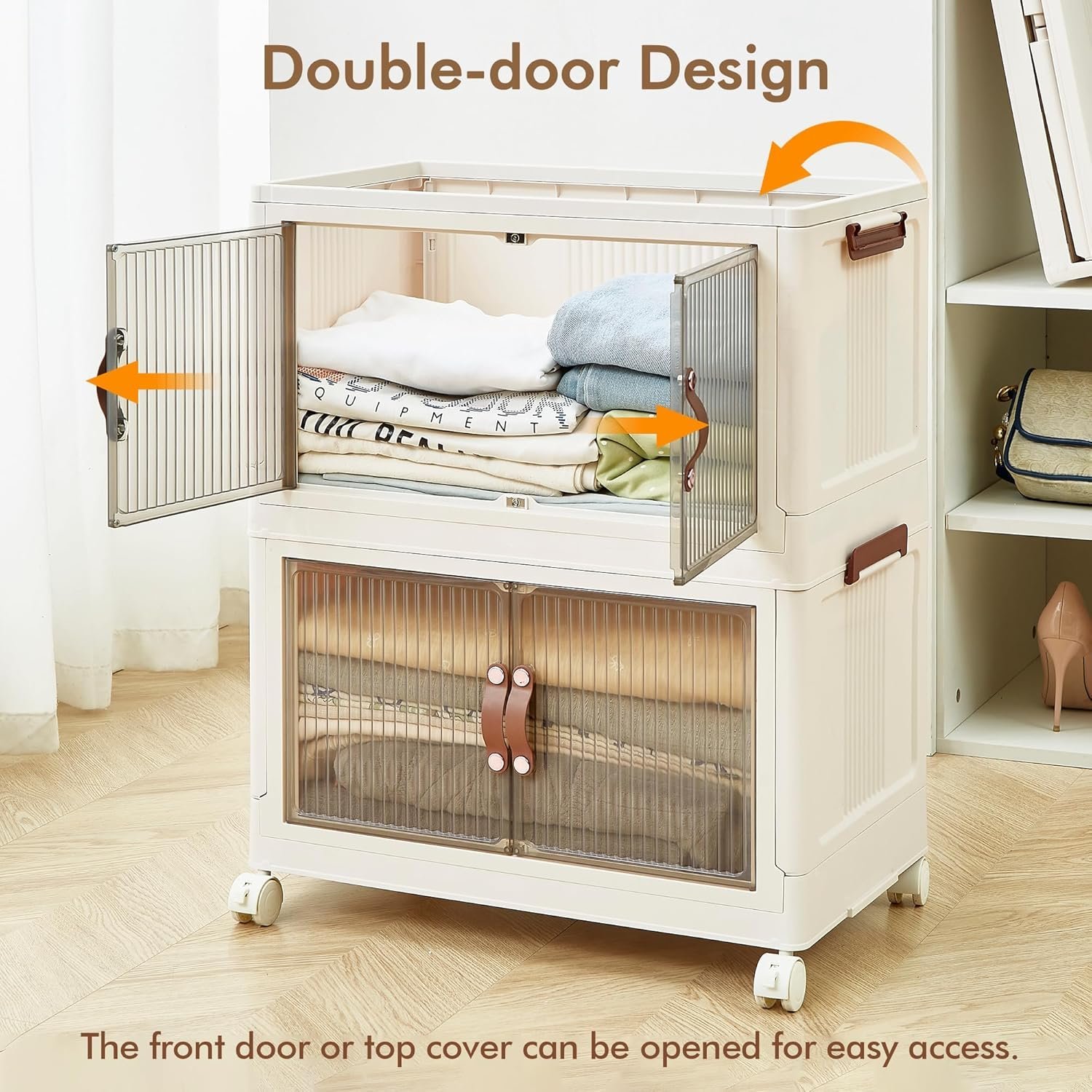 Easy to assemble in 1 minute, no tools needed. The top lid and front doors make accessing items super convenient.