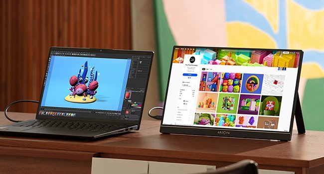 Ready for collaboration, anywhere. Seamlessly work together with a 17.3" portable monitor designed for easy sharing and presenting.
